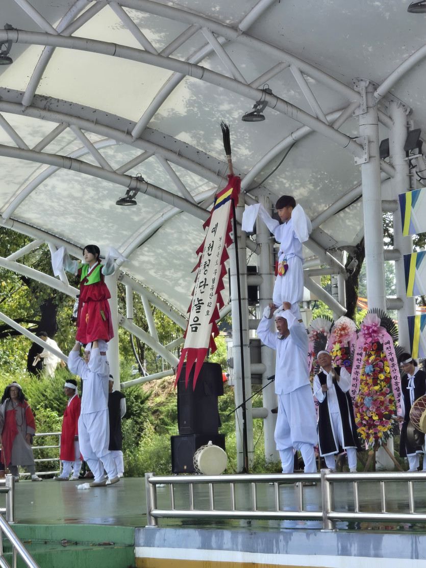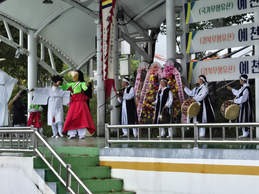 - 내용 : 세계탈문화예술연맹(IMACO)은 지난 9월, 경상북도 지정 무형유산인 예천청단놀음 보존회로부터 초청받아 2025년 예천 무형유산 합동발표회에 참석하였다. 공연 관람 전 보존회장 및 사무국장을 필두로 참석해준 연맹에 감사를 표했으며, 시·도 지정 무형유산의 현재 상황에서부터 연맹의 해외 교류 확대와 한국 탈 수집 지원, 국제 교류 무대에서의 동행 방안 등 여러 주제에 대해 심도있는 대화를 나눌 수 있었다. 이번 합동발표회에는 예천청단놀음뿐만 아니라 예천통명농요와 송파산대놀이와 같은 국가무형유산단체도 참석하였으며, 그외에도 예천공처농요를 포함해 포항과 구미 등지에서 활약하고 있는 여러 무형유산 보존 단체가 참석하여 자리를 빛내주었다.